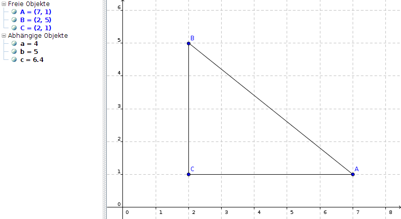Dreiecke in ein koordinatensystem zeichnen. Wir können an ihm weder breite noch länge messen. Punkt im koordinatensystem ein punkt hat keine ausdehnung fläche. Zeichne in ein kordinatensystem ein dreieck mit den punkten a 7 1 b 2 5 und c 2 1 und beschrifte es 1 cm entspricht 1 einheit und bestimme die länge der seiten a b und c nicht messen sondern rechnen.